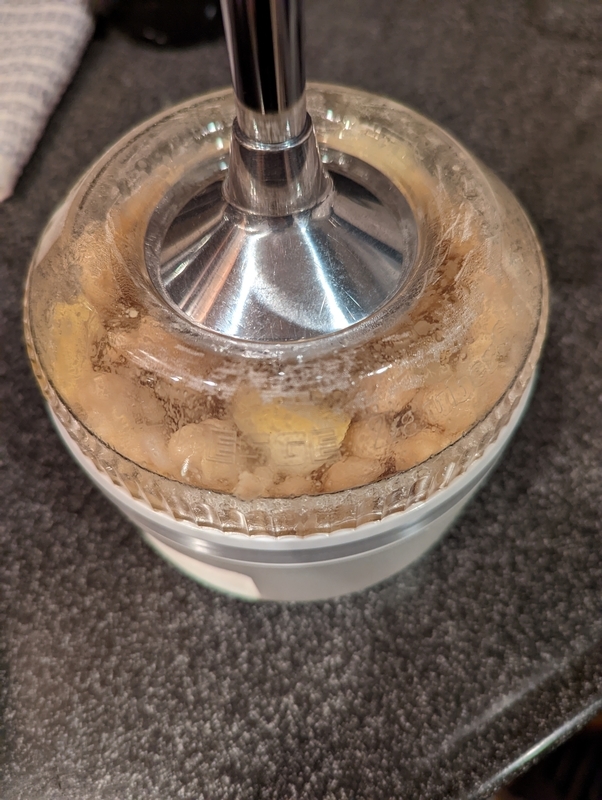 ミキサーの分量の都合で2回に分けましたが、2回目のほうはレモンなしで芝麻醤少しとオリーブオイル、豆だけで。どうせこの後全体を混ぜるし。